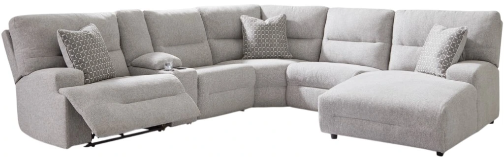 Includes 6 Modular Pieces: Left-arm facing power recliner, power armless recliner, armless chair, console with storage, wedge and right-arm facing power reclining back chaise