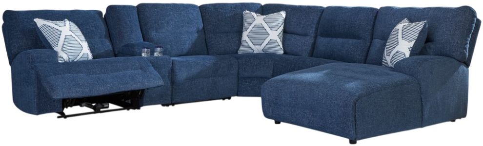 Includes 6 Modular Pieces: Left-arm facing power recliner, power armless recliner, armless chair, console with storage, wedge and right-arm facing power reclining back chaise
