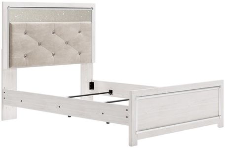 The epitome of fashion-forward design, this full panel bed is a beautiful blend of comfort and luxury. Shiny chrome-tone accents, a pearlized finish and button-tufted upholstery bring a glam touch to the richly rustic appearance. Remote-controlled LED lighting adds style and modern conveniences to your restful retreat.Read More