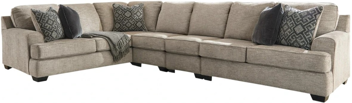 Whether your vision is clean and contemporary or cozy modern farmhouse, this sectional in a stone-tone neutral upholstery has the corner on style. Merging ultimate comfort with striking good looks, this chic sectional includes coordinating accent pillows for that much more feel-good allure.Read More