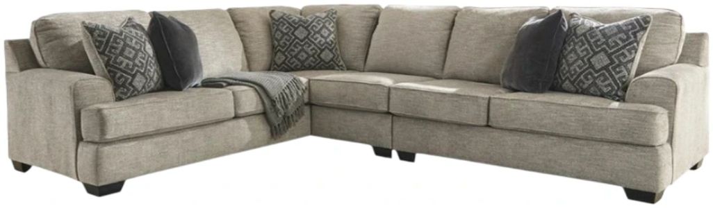 Whether your vision is clean and contemporary or cozy modern farmhouse, this sectional in a stone-tone neutral upholstery has the corner on style. Merging ultimate comfort with striking good looks, this chic sectional includes five coordinating accent pillows for that much more feel-good allure.Read More