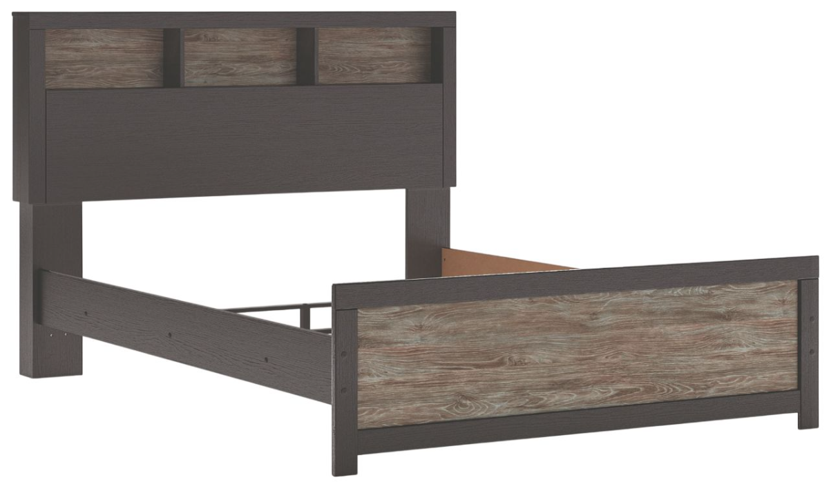 The Broachmyn bookcase bed blends utility with bold, charm. Its spacious headboard features open shelving ideal for books, décor, or nighttime essentials, while the black and gray finish adds a sleek, contemporary edge. Designed for both style and function, this bed elevates any bedroom with its commanding presence and practical storage.Read More