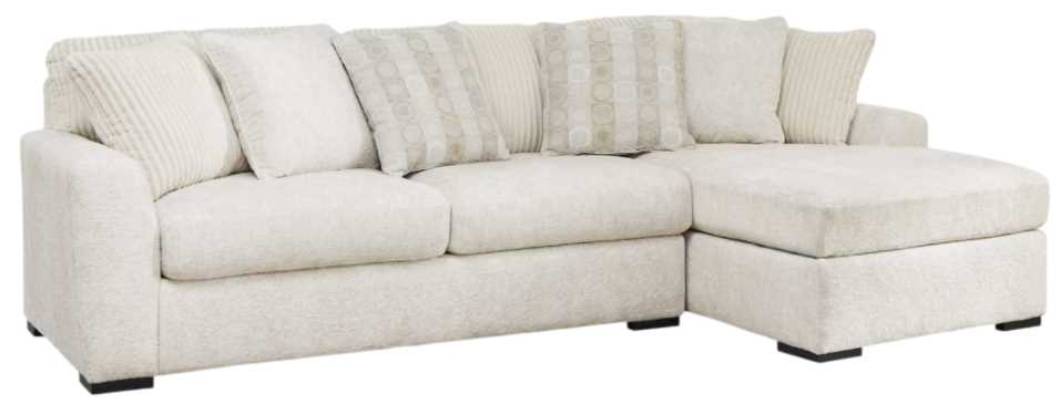 Reflect your uniquely versatile style personality with this sectional with chaise. Its plush upholstery is complemented with retro-cool corduroy on the back cushions, creating an ultra-soft seating experience with tons of eye-catching texture. Ready to refresh your aesthetic? The sectional’s transitional silhouette and neutral hue easily adapt as your style changes.Read More