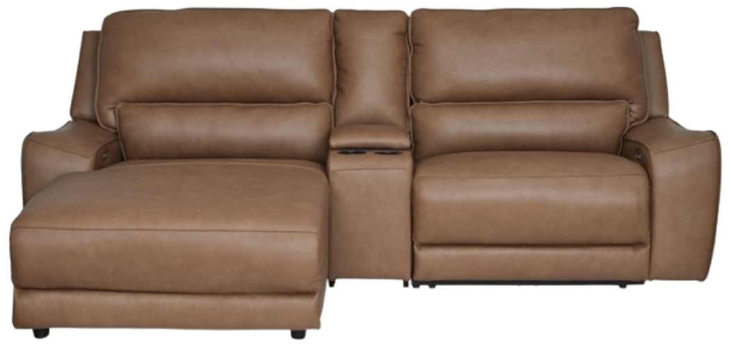 Includes 3 Pieces: Left-arm facing power reclining back chaise, console with storage and right-arm facing power recliner