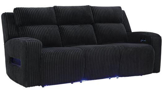 The Signature Design by Ashley® Forest Lake Black Power Reclining Sofa with Adjustable Headrest offers exceptional comfort with its power reclining feature and customizable headrests. Upholstered in sleek black fabric, it blends modern style with practical relaxation, making it a perfect addition to any contemporary living room.Read More