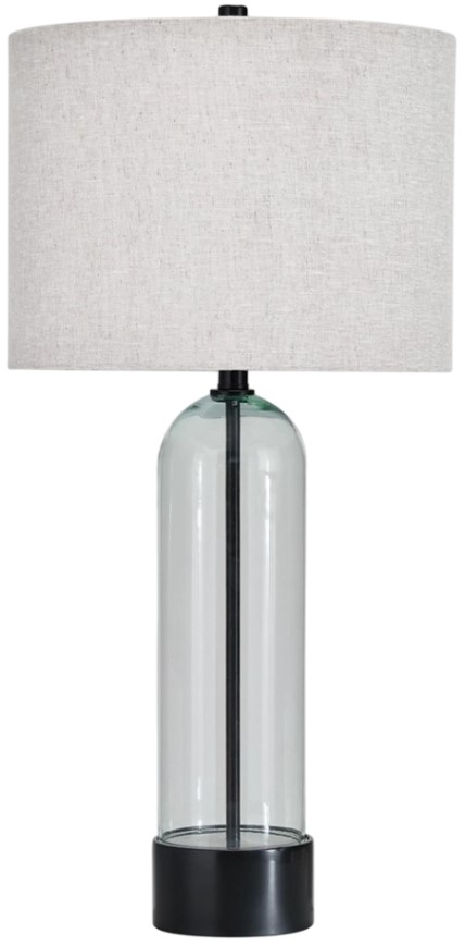 Clear glass and black finished metal table lamp
