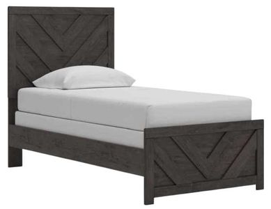 Designed with everyday style in mind, this twin panel bed is a simply chic approach to modern living. A dark charcoal finish blends black and brown undertones, creating a versatile look that effortlessly pairs with your existing pieces. And for an extra dash of trend-right style, the headboard is dressed in a playful chevron pattern.Read More